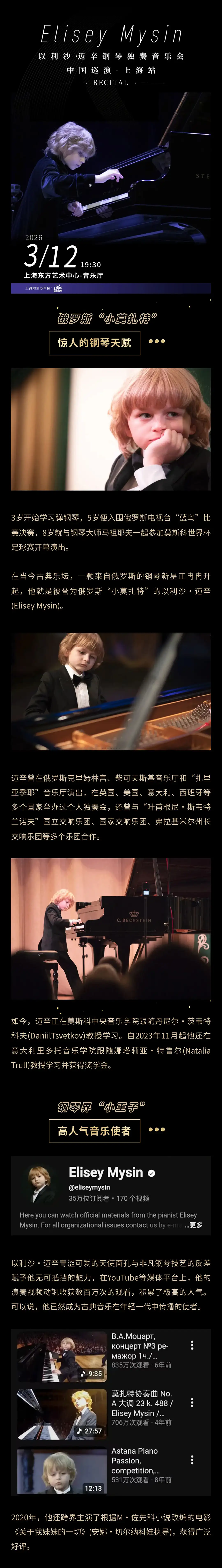 以利沙•迈辛 钢琴独奏音乐会中国巡演-上海站